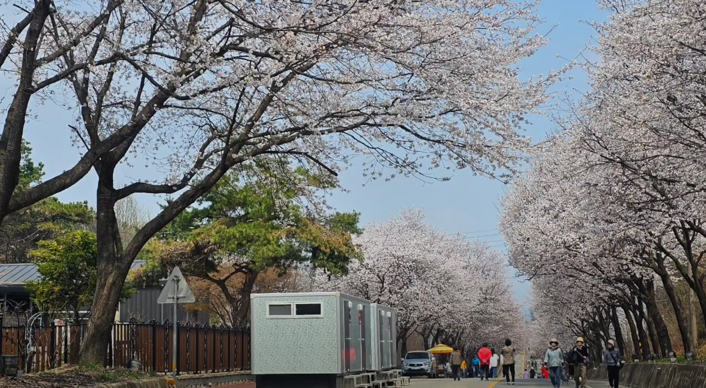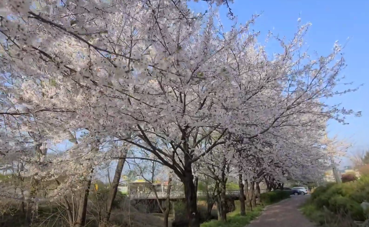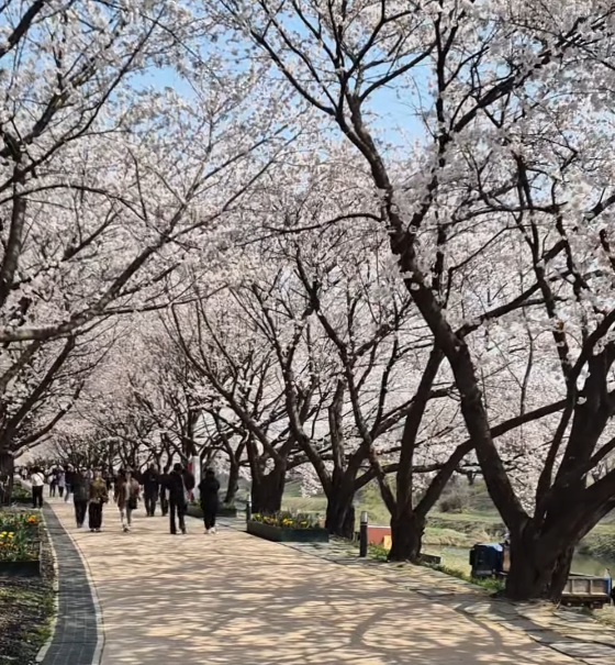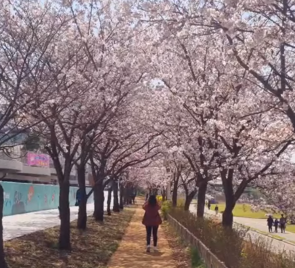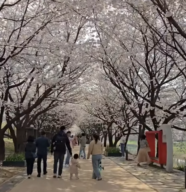 하천 양쪽으로 벚꽃이 터널을 이루며, 그 길을 걷는 기분은 마치 동화 속 한 장면 같습니다.